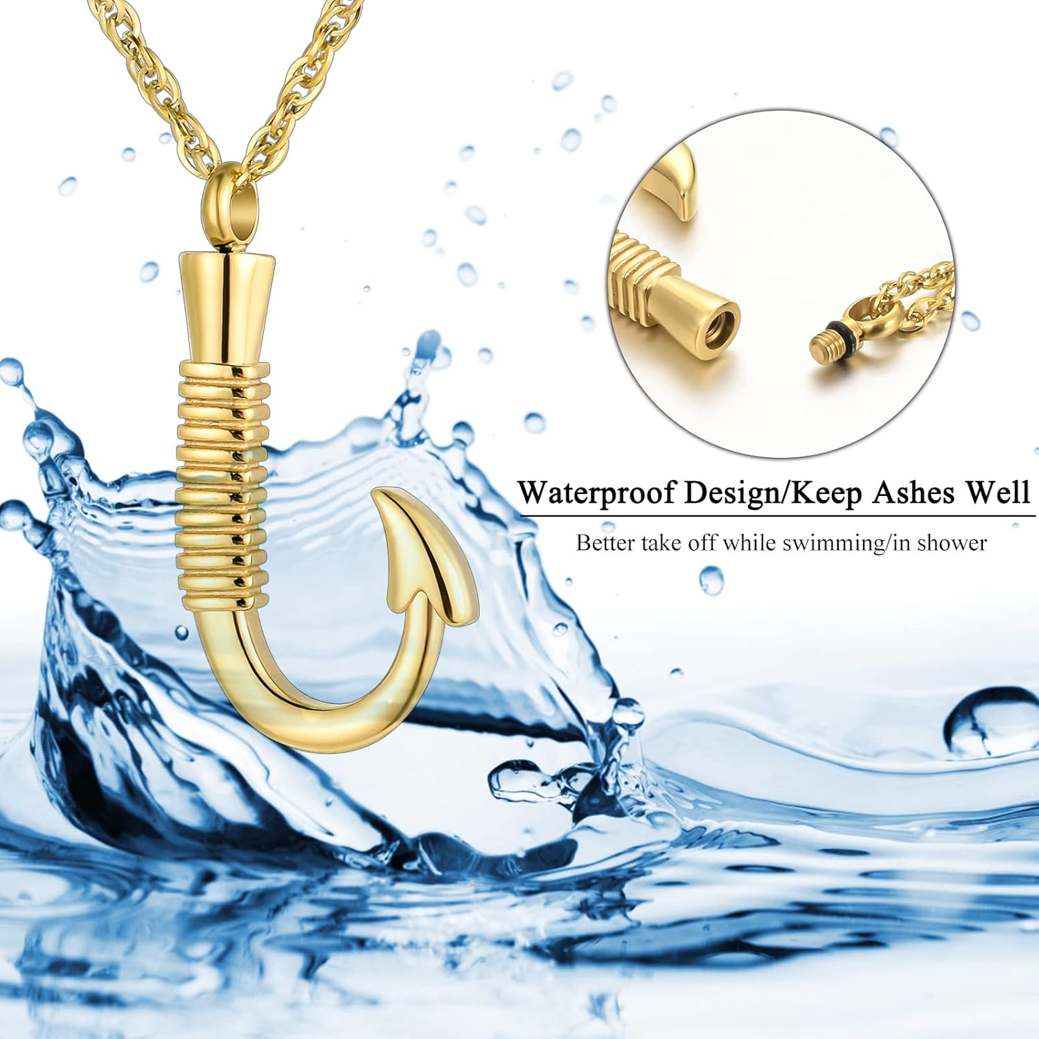 I ordered this to store some of my Dad's ashes in, as he recently passed away unexpectedly. He loved fishing and I have many happy memories of fishing with him. It looks just like the pictures and is a little bigger and heavier than I expected, but in a good way. I bought the black one, but I think I might have preferred the silver one, as I wear silver jewelry. However, the black is very bold, which is also a good thing. It stands out. A perfect way necklace to carry a little bit of your loved one with you. I greatly appreciate the tiny spoon and funnel that it comes with as well. I haven't yet been able to bring myself to open my Dad's ashes and fill the hook, but the tools it comes with make it seem much easier than I expected.