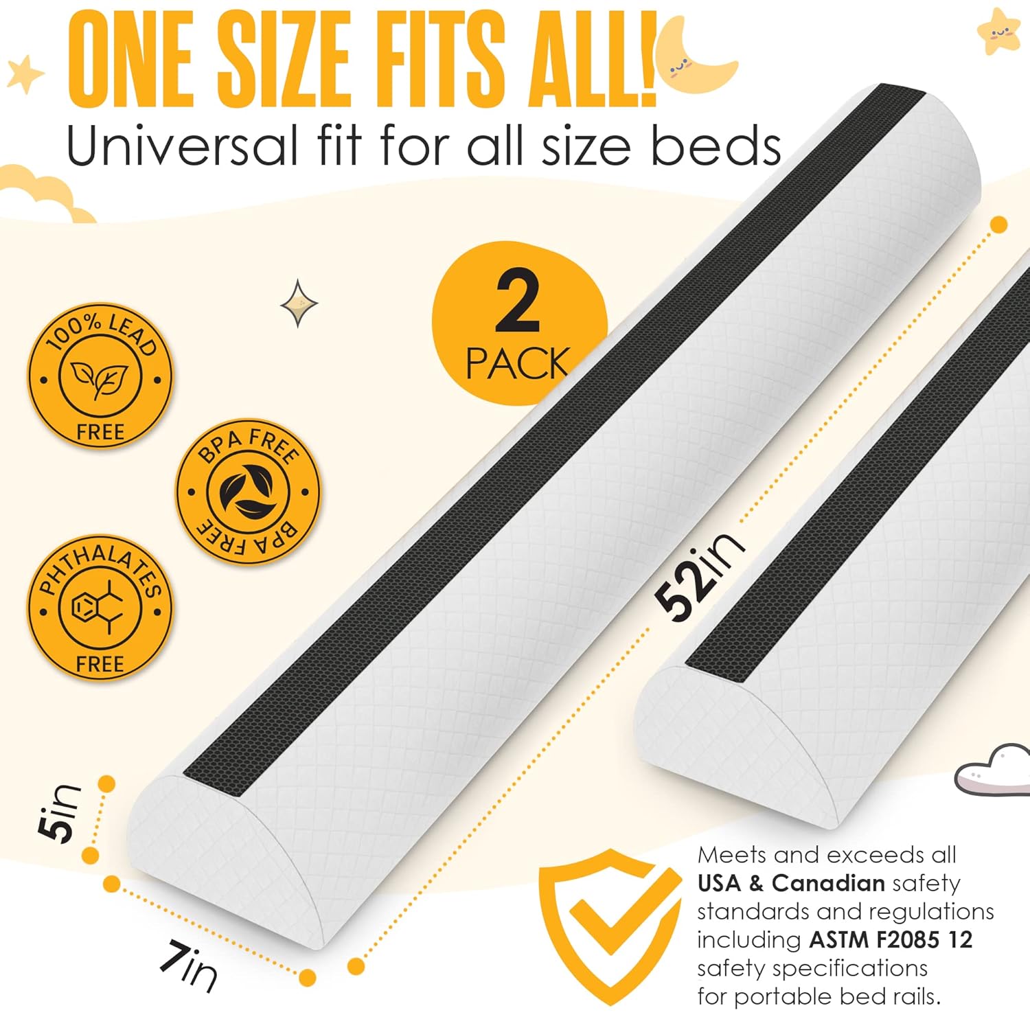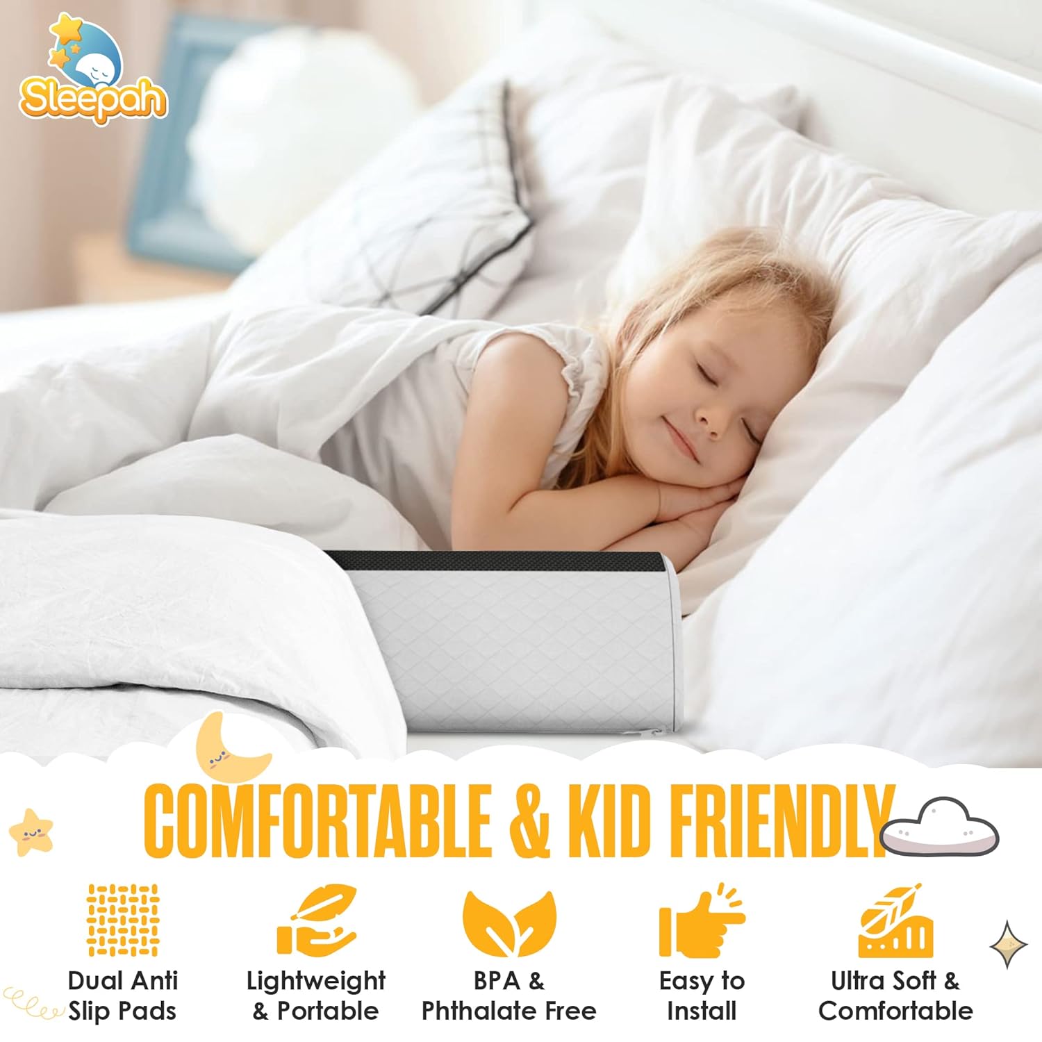 I bought the Sleepah Bed Bumpers for Toddlers to help my little one transition into a big‑kid bed, and I’m honestly impressed with how well it works. The memory foam is soft yet supportive, and stays in place!The waterproof, machine‑washable cover is a huge plus. Accidents happen, so being able to quickly unzip and toss the cover into the wash has already saved me time and stress.Best of all, my toddler sleeps comfortably and hasn’t rolled out once. Compared to bulky metal rails, this is so much easier when changing sheets and looks cleaner on the bed.Fits perfectly in our kids Full size bedBonus: Easy to get out of the bed as a parent and keep your kid asleep.