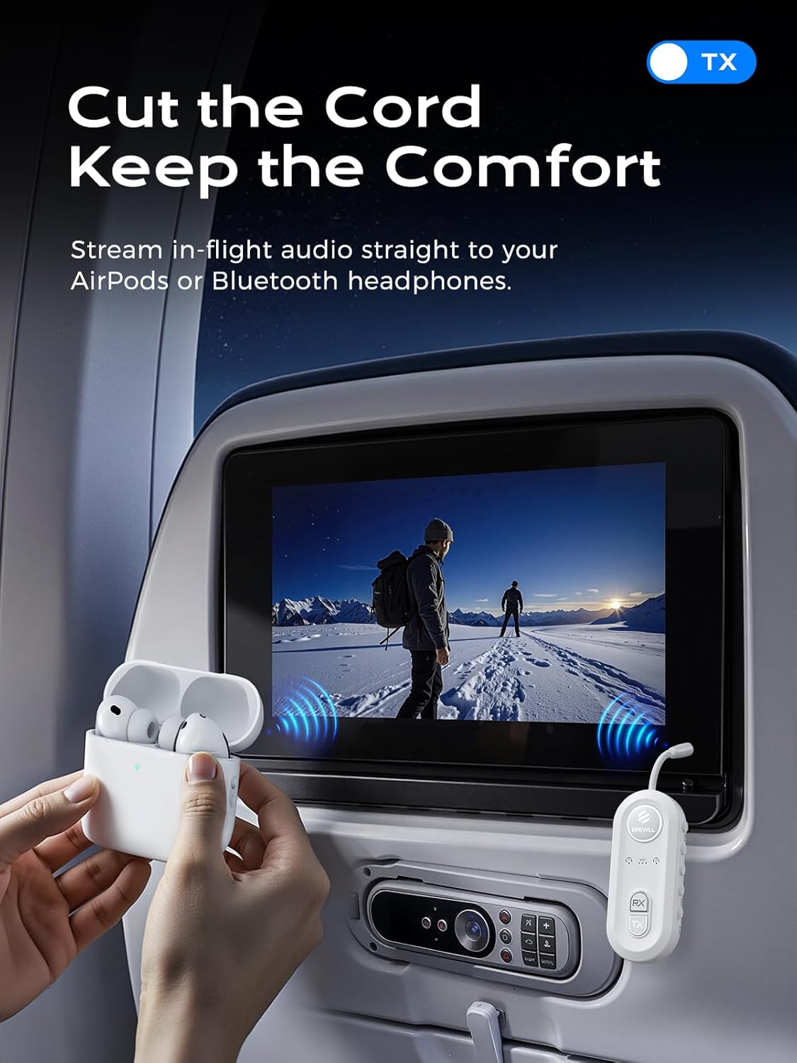 I have to confess that I'm addicted to electronic gadgets and travel related accessories, and this item qualifies as both. I work from a home office 2-3 days a week, work in an office the other days, and love to travel. My work requires a Windows PC and a lot of time on Zoom, and the struggle to find a wireless headset that works is real - the number of these products I've purchased and reviewed shows that.My home office setup has my personal Mac and my work Windows laptops, an iPad, and my iPhone. I find that I hear much better with in-ear than over the ear headsets, and find them more comfortable. Two common problems I've observed with numerous headsets/adaptors I own/have owned: 1) difficult to set up, 2) flimsy and prone to malfunction.On the road, I like to travel light and wireless. I own a product that competes with this one and have struggled with getting it to connect to my AirPods on in-flight entertainment systems (IFEs). On my last trip I discovered that it was broken just from being in my cable case that I keep in my backpack. I've been debating if it is worth buying another one when this popped up on my Amazon Vine list. NOTE: the fact that this was a Vine item in no way influences my review. That device also doesn't work with my laptop.So far, I've used this with my laptop & my spare pair of AirPods for several Zoom meetings and it is easy-to-use, offers a pretty impressive battery live, and great sound. I've been using an external mic (Yeti) with it because I also record training videos and need to have very high quality audio input for those. I am thrilled with how easy it is to use this and the sound quality I get on output.It also travels in my backpack with me to work and it is a much better design than that other device. The integrated cord storage removes a potential breaking point, the large and easy-to-read power on/off button is placed where it should be for a good design. It is sized right for travel - large enough to add some durability and small enough to be easy to carry.I don't have air travel planned until December, so that part of my review will have to wait but I will be trying it out on two different airline IFE's at that time. I'll come back and update then.Update: 12/31/25 - Works great on both the 'normal' IFE system (United) and the two-prong IFE on wide-body aircraft (Delta)! Seamless connection and great sound quality.