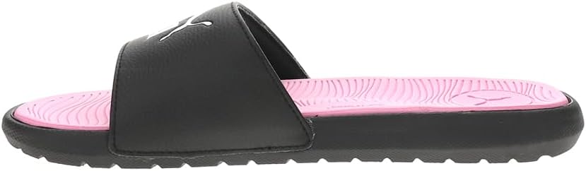 Love these slides! They fit true to size, and although I'm not well versed in Puma products, these do look and feel legit. They're nice a lightweight, but not so light that they feel cheap. I have 0 complaints.Luck has been a toss up for me when it comes to buying slide sandals online. I have a pair of Under Armor slides that look very similar to these as far as the shape/style and logo placement go. The UA ones have a thicker sole, and the part that goes over your foot (the strap? No idea what you'd call it) is slightly wider across the foot from top to bottom. Both the Puma and UA slides are the same size (8) and are both women's. I really like both of then, but the Puma slides look a bit more "dainty" than the UA slides do. I do like that about the Puma slides. I also bought a pair of Adidas slides on Amazon a few months back, and those didn't fit well at all, so I had to send them back. They were a woman's size 8, and whilenthey did not my feet length wise, the strap that goes over the foot was way too loose on me. I do have flat feet, but I don't ever remember really having to adjust my shoe size to accommodate that, nor have I ever had to buy the wide version of my shoes. Those Adidas slides would still fly right off my feet as I walked around the house because of how loosely they fit, even with socks on. Because of that, I was nervous about ordering these Puma slides. I was afraid these would be too large, or would fit similarly to the Adidas with the loose strap. I'm glad I took a chance and purchased these, though. They fit great and are my go-to pair of slide sandals now. I would definitely recommend these if you're thinking about getting then, and I plan to buy another pair once I wear these ones down a bit. I love them.
