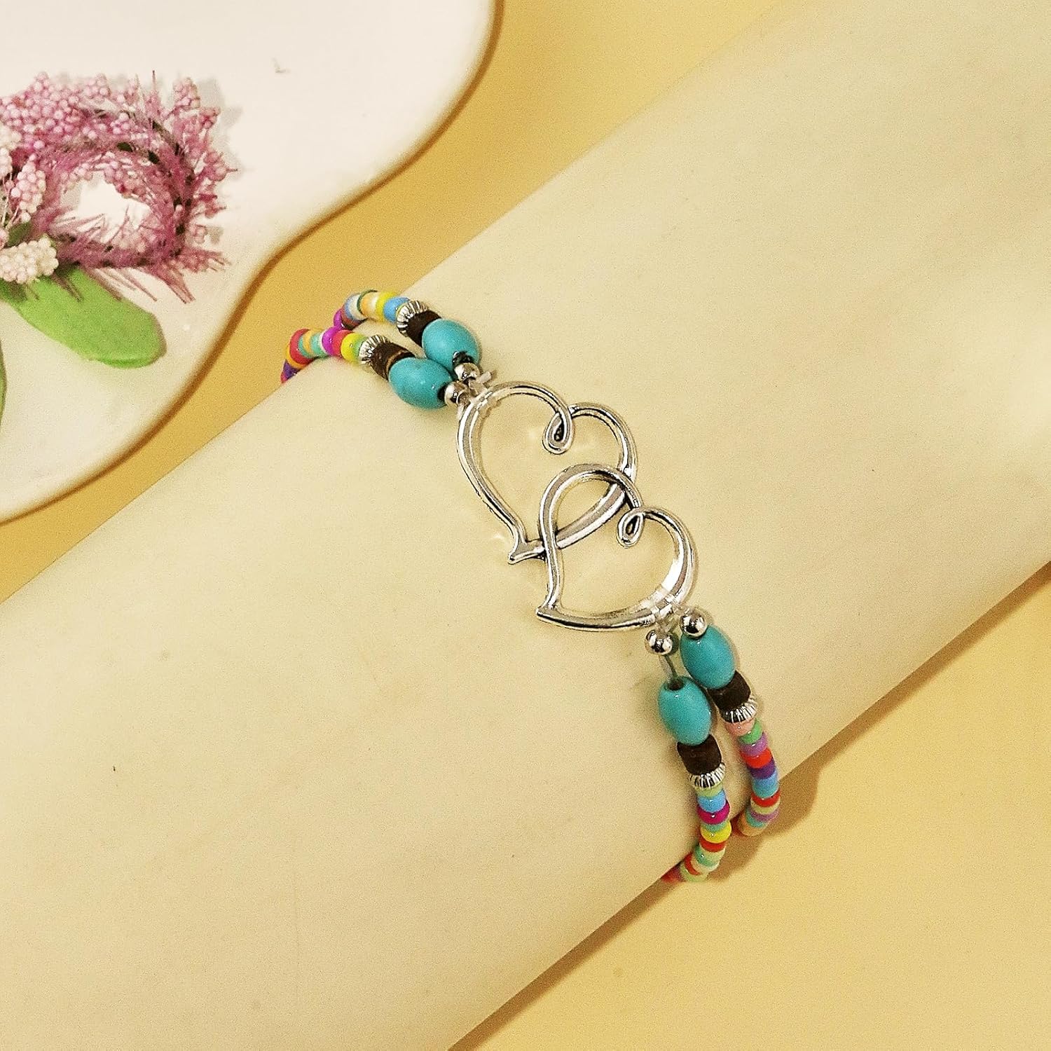 I currently am wearing this ankle bracelet. I love how the material is stretchy and it doesn't pinch my skin. The design and colors are magnificent. The best part too is that it doesn't leave your skin green like most ankle bracelets so you can always keep it on in the shower or swimming.