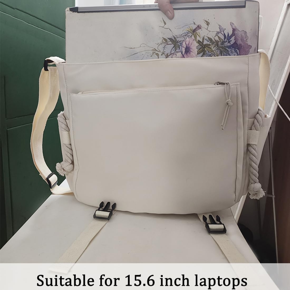 I love it. I didn't expect to get the pins and penguin plush charm they showed in the photos and yet I got them and they're very cute! The cat plush charm in the photo is my own and a separate purchase I had made for the bag. The size of the bag is nice for me, and can confirm that it can fit an average work laptop though always check if yours aligns with the bags dimensions. Quality is good however I wish the strap was a bit longer by default (dw its adjustable) as it sits at your lower back rather than your waist/hips, whether or not this is good is personal preference. Though, if you dont have a tall torso then you won't have this problem.(I'm 5' 11 for reference.) There's 2 pouches on the inside of the main pocket. Has 3 pockets, one on the very front little space, one underneath the flip up pocket with a bit more space, and then the main one with good space. The only issue for me personally is just the strap, I may try and see if I can find a longer/more comfortable replacement strap. Though overall I love the bag so much and I WOULD reccomend if you love the bags aesthetic. (FOR PET OWNERS: It does attract animal hair slightly!! But nothing a good lint roller cant fix, and we should own many by now so.)
